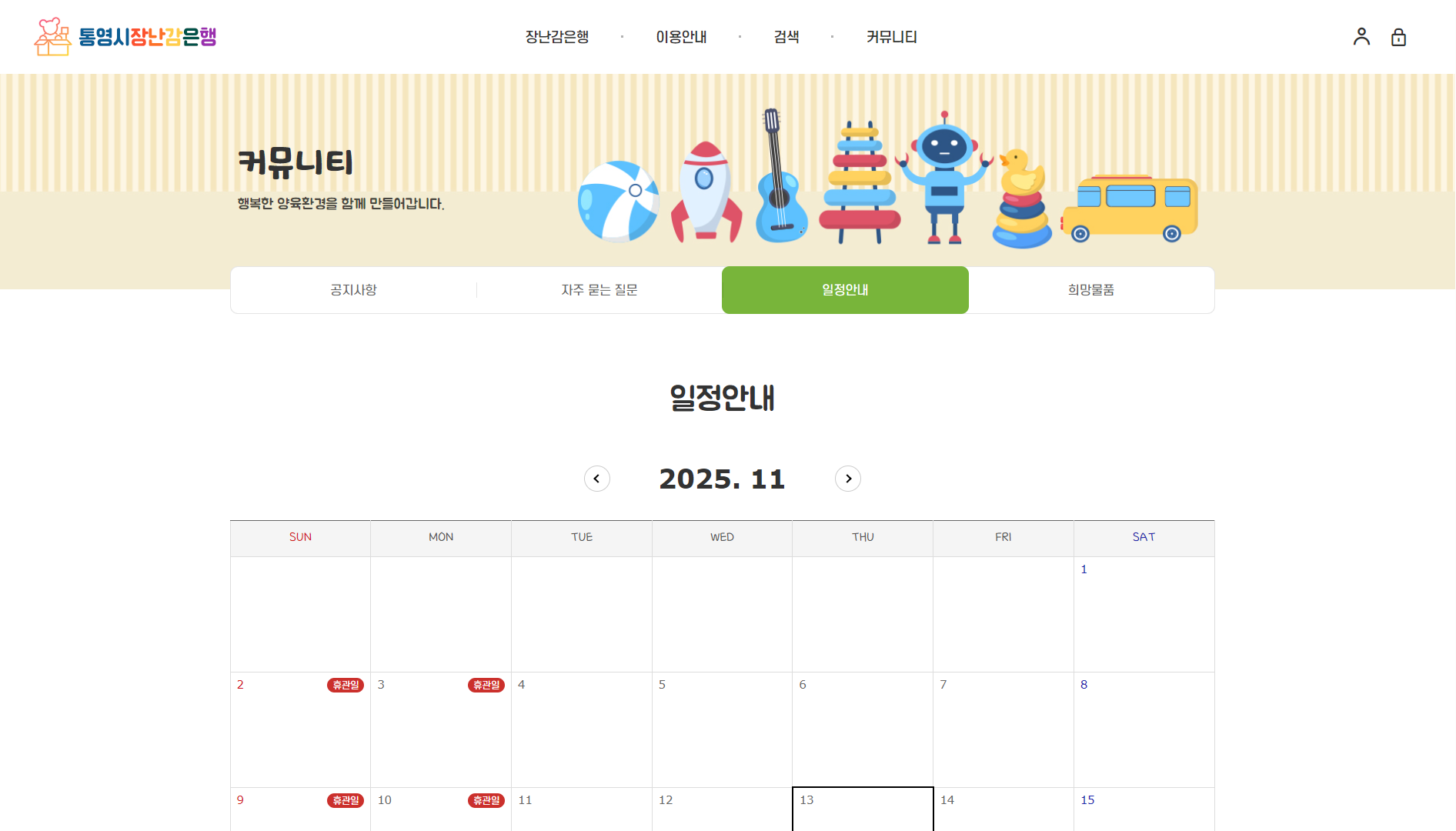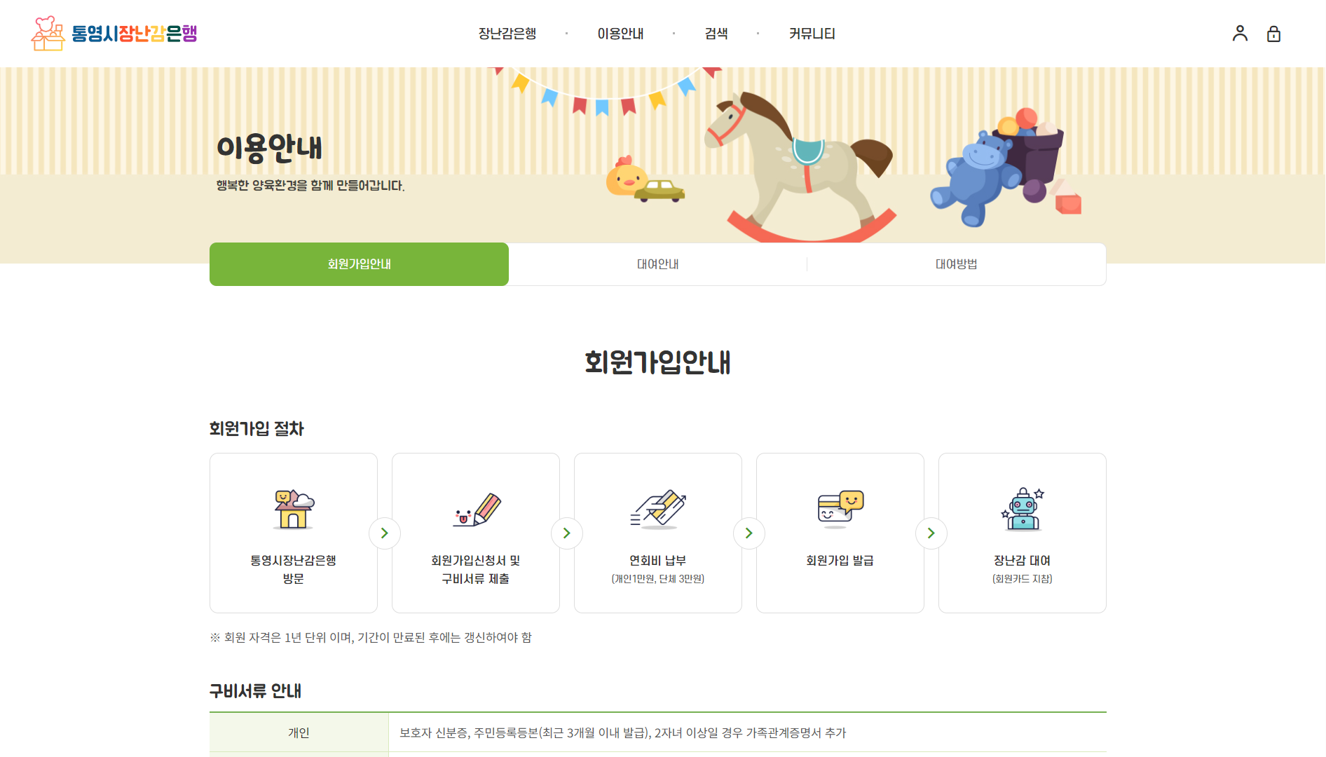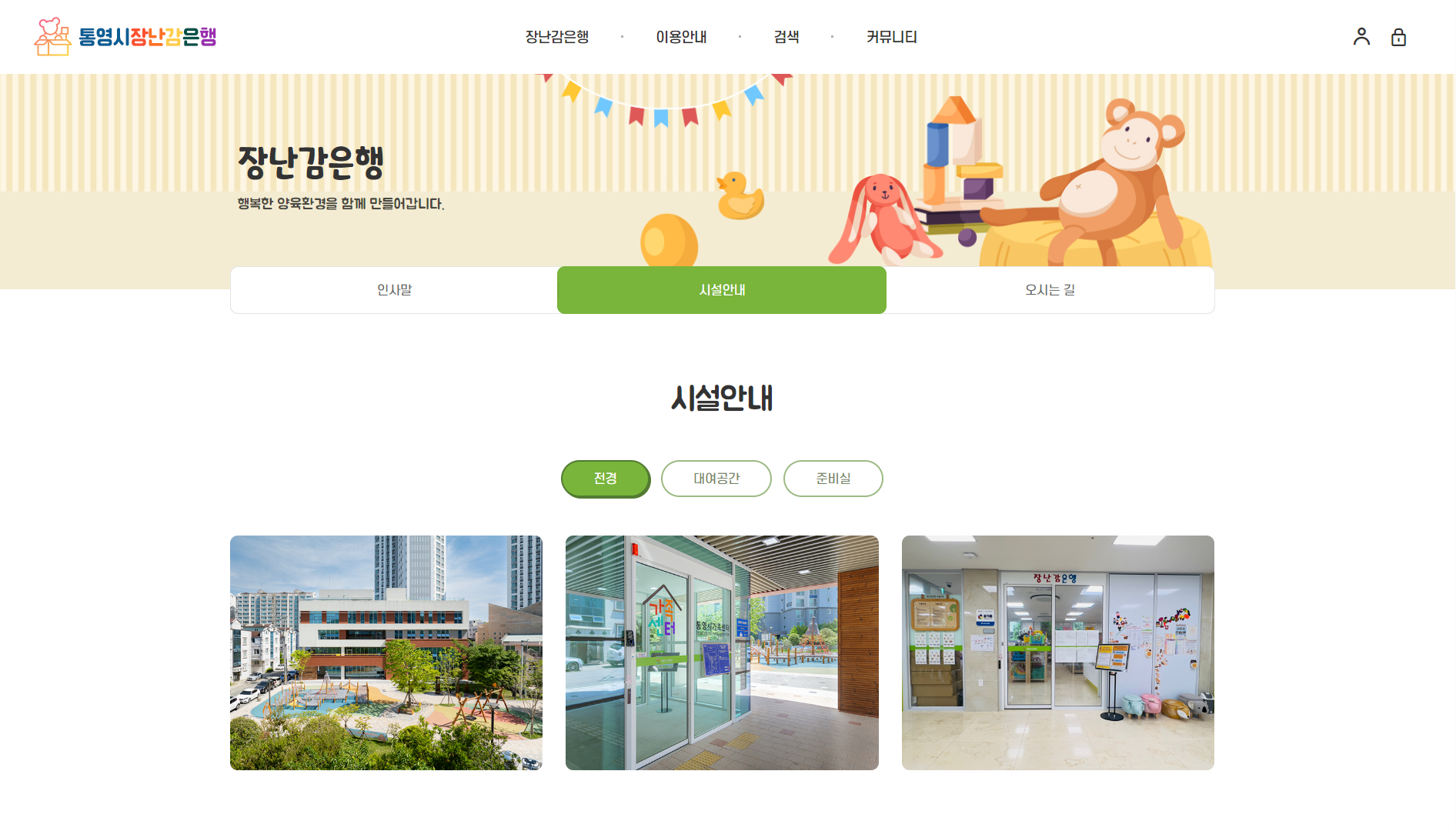 통영시 장난감은행 홈페이지이기에 유아나 보호자 분들이 주 방문자들임을 감안하여 전체적인 디자인을 귀여운 인상과 포근한 느낌을 주려고 노력하였습니다. 반응형 홈페이지이기에 상단 드롭바 메뉴 형식을 채택하여 직관적인 메뉴 선택이 되게 하였습니다. 방문자들에게 심플한 디자인을 제공하여 유저 인터페이스 편의성을 상승시켰습니다.