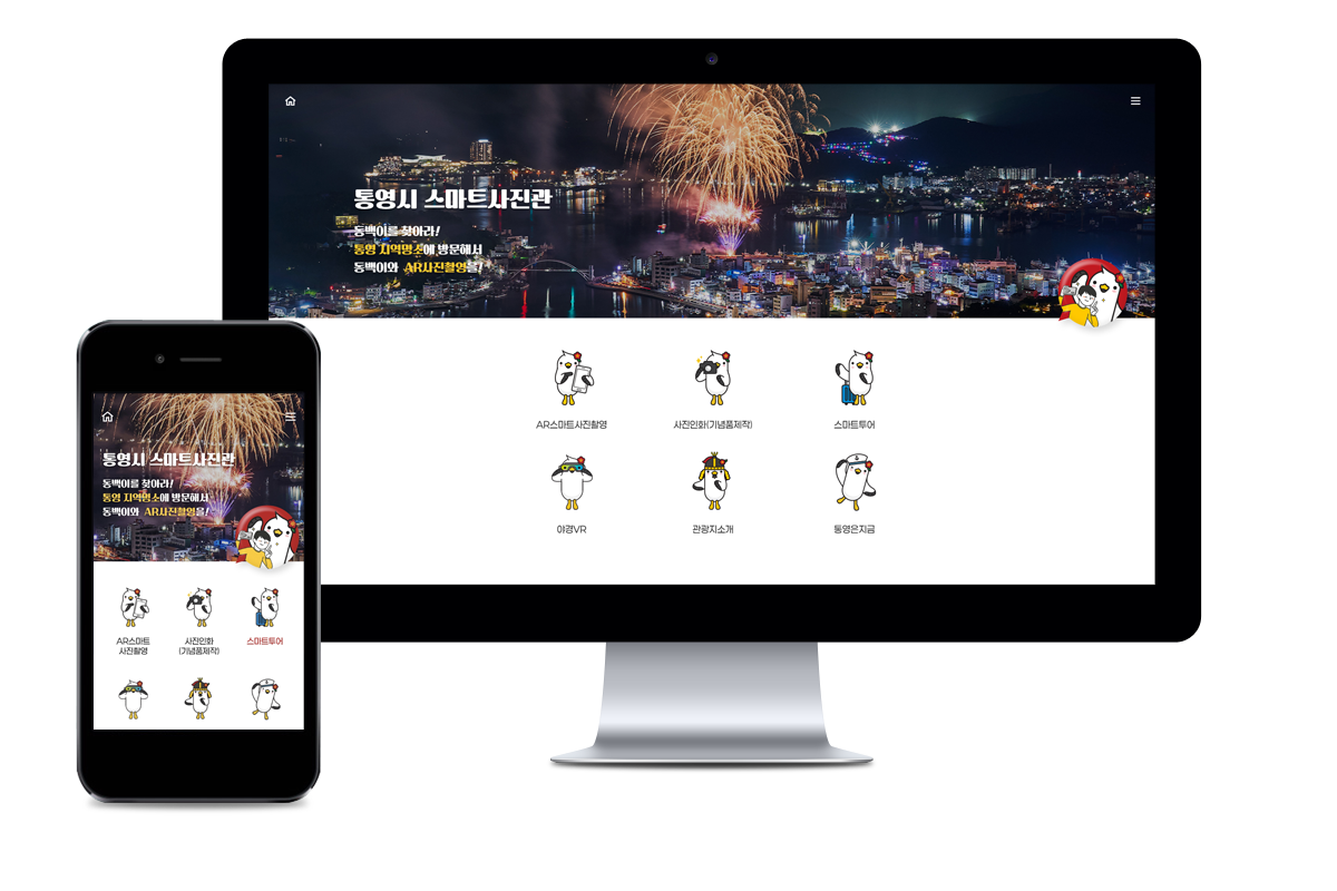 통영시 스마트관광 사업에 일환으로 제작되어지는 통영시 스마트사진관 플랫폼 구축 디자인입니다. 전체적으로 짙은 색감과 화이트 색감을 교차 사용하여 젊은 세대의 감각에 맞게 심플하고 간결하게 디자인되었습니다. 모바일 이용객들이 월등히 많기 때문에 모바일 베이스 유저 인터베이스를 기본으로 설정하였습니다.